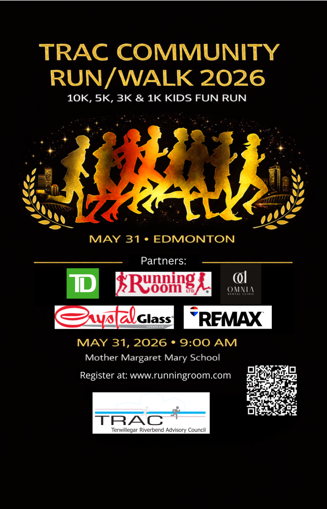 TRAC is the acronym for the Terwillegar Riverbend Advisory Council, a society formed under the Alberta Societies Act on December 1, 2003 under the direction of the three active community leagues in the Terwillegar/Riverbend area: Riverbend, Brookview and The Ridge.